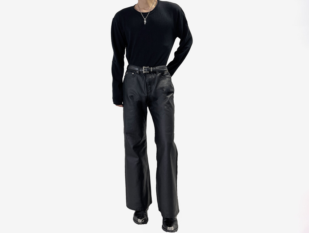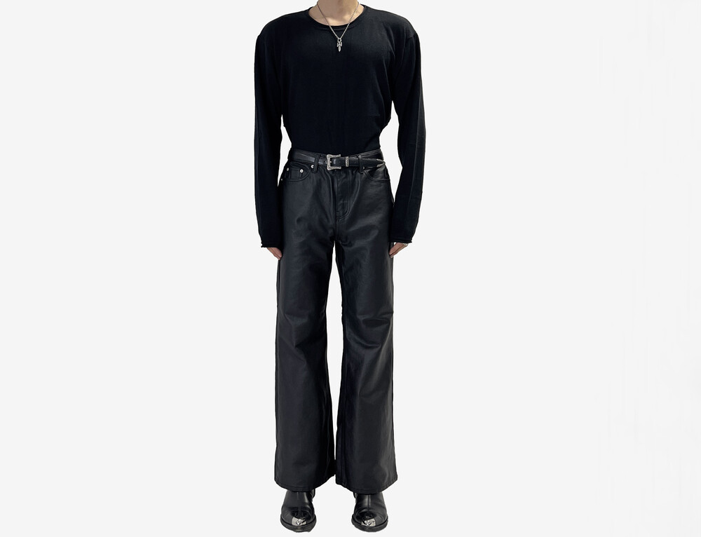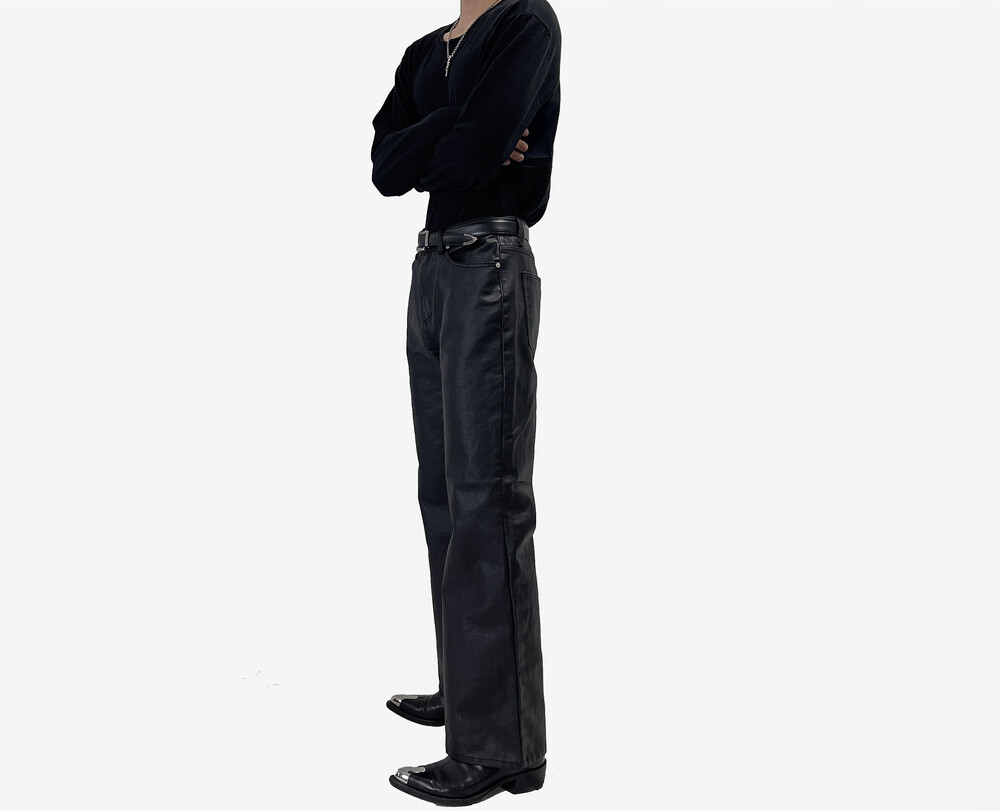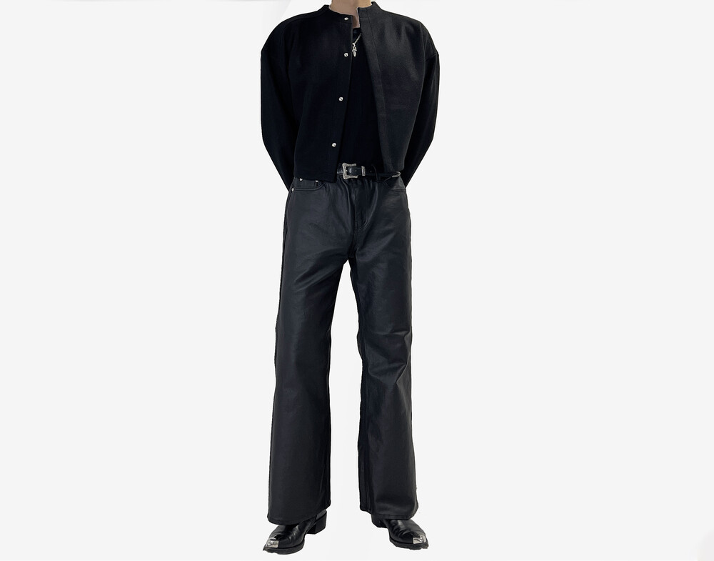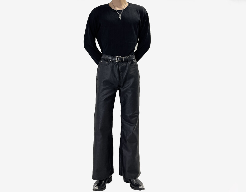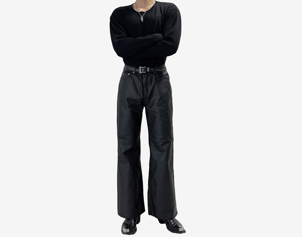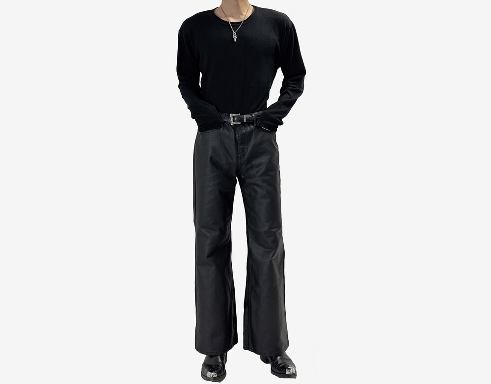 Coating semi wide boot cut pants