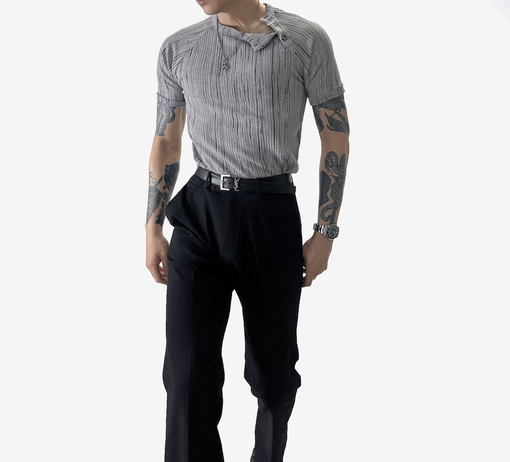 Cookie diagonal Henry neck short sleeve
