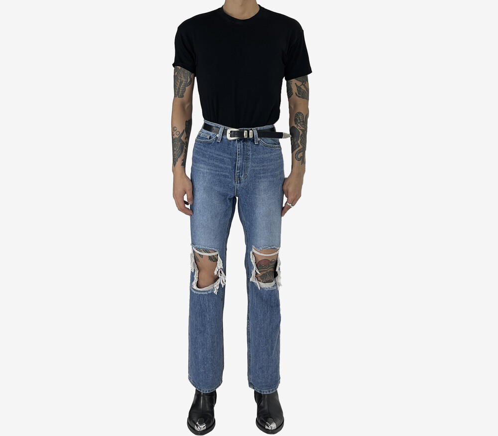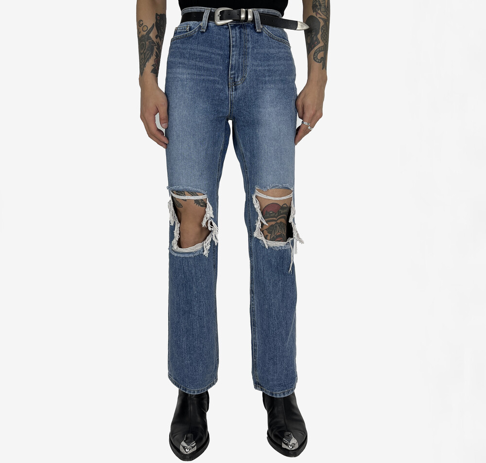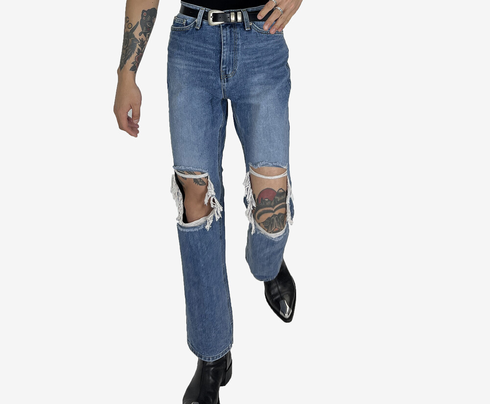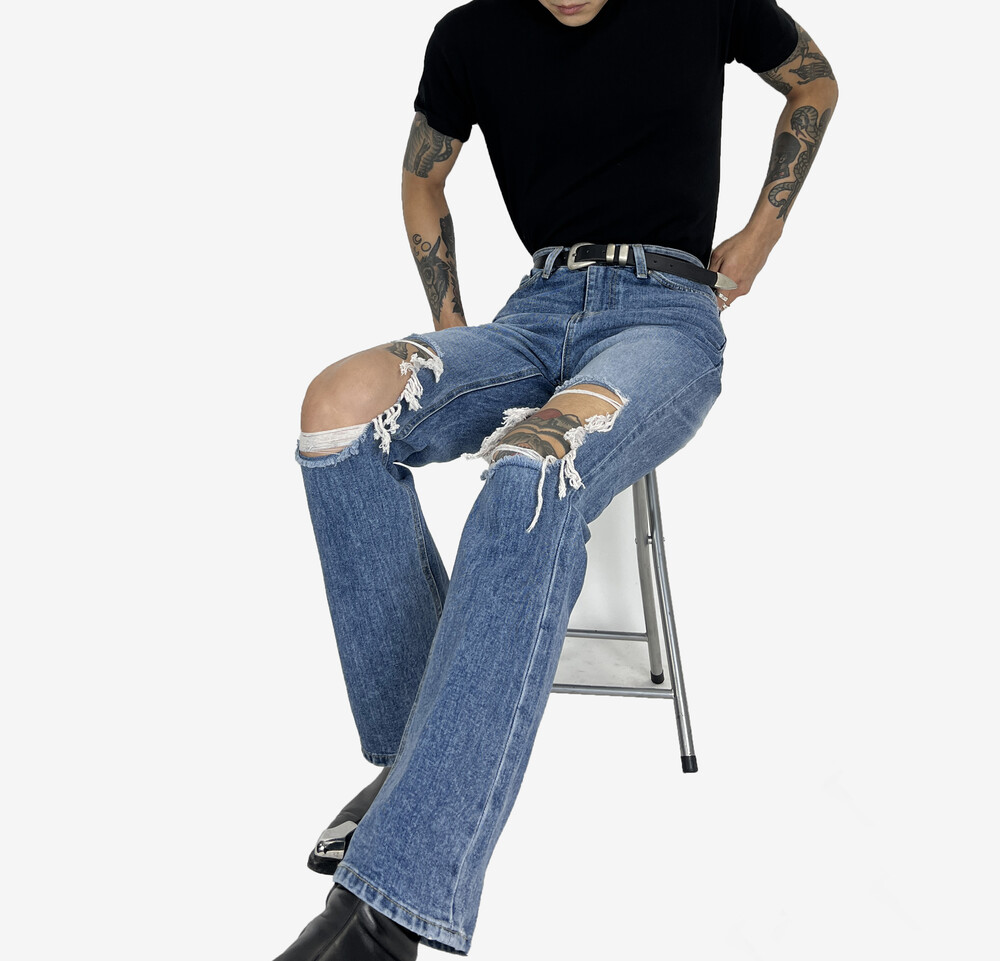 Destroyed semi boot cut denim