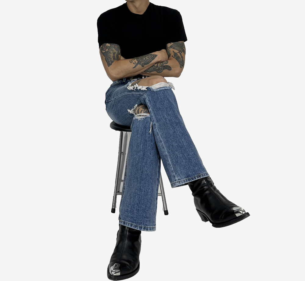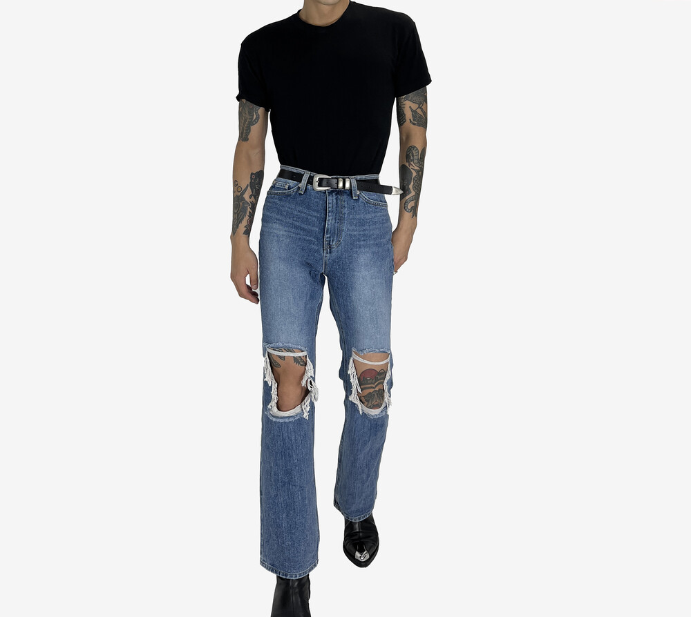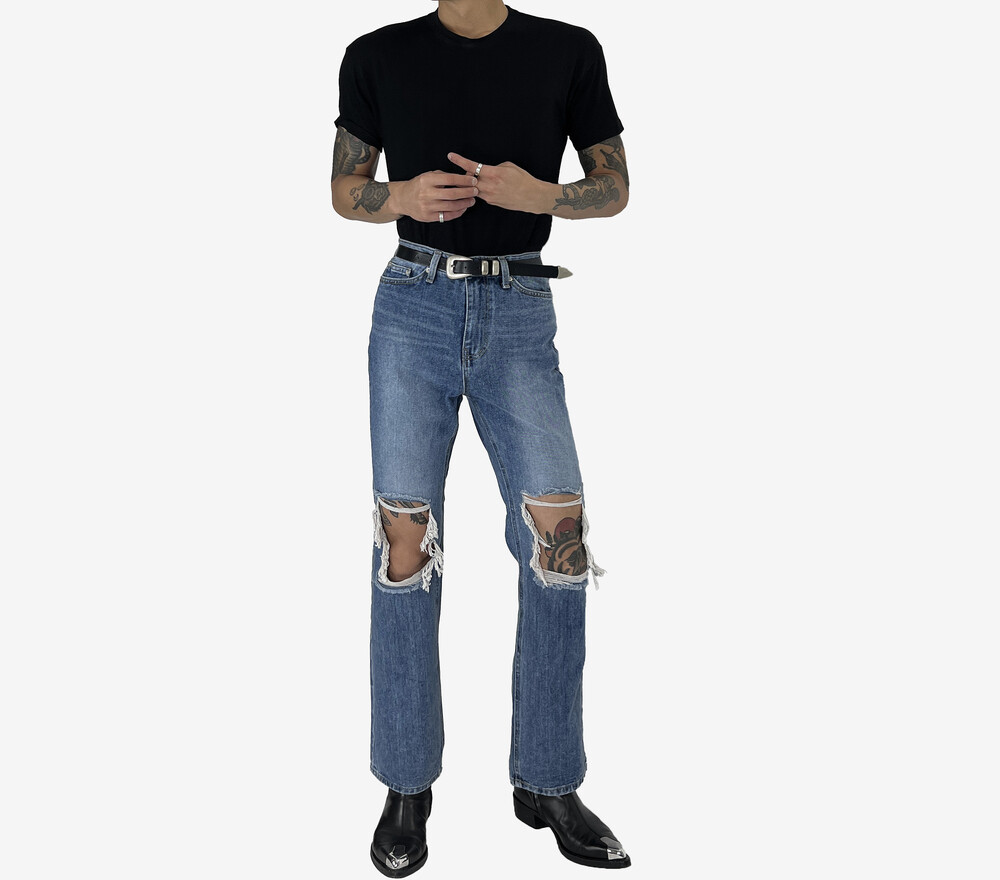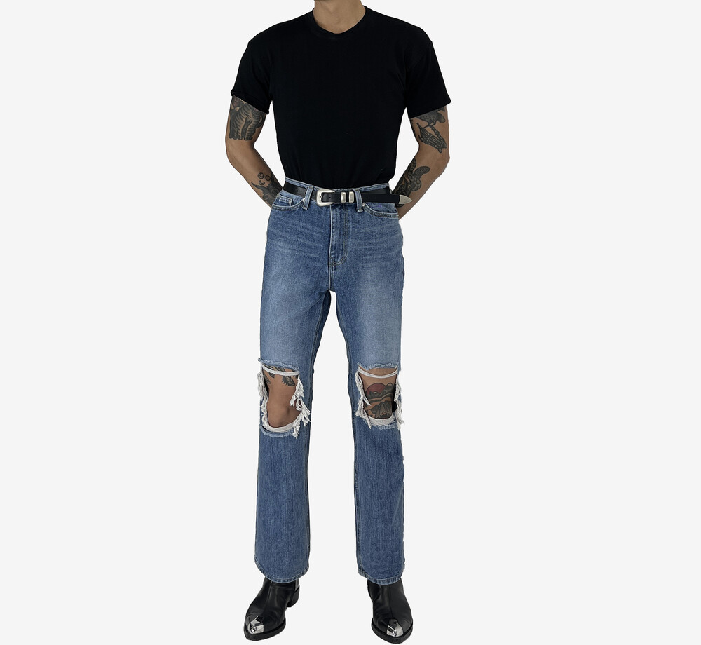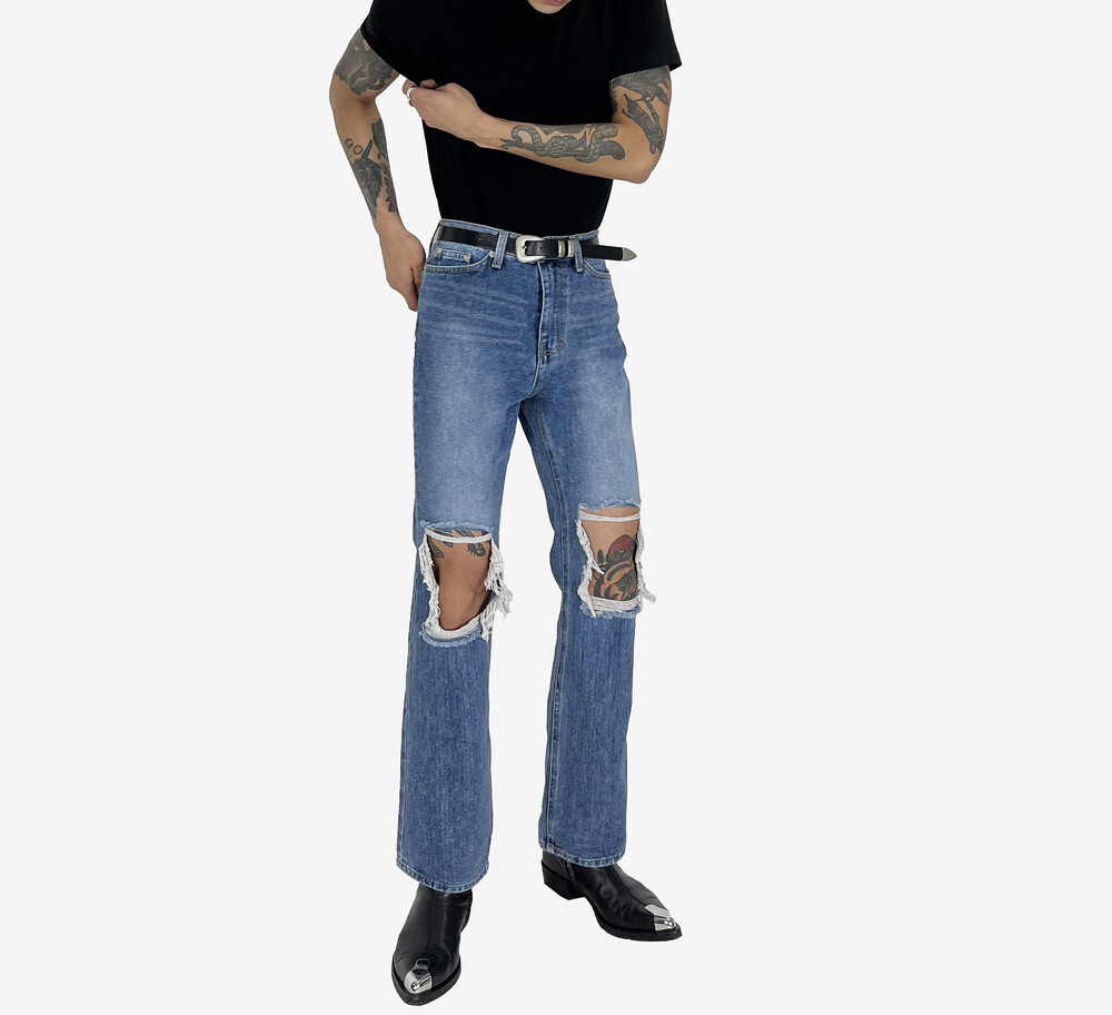 Destroyed semi boot cut denim