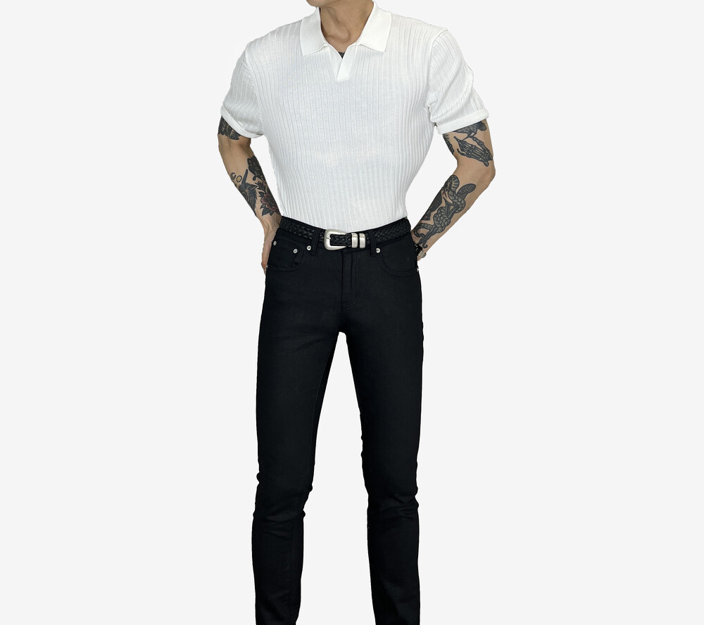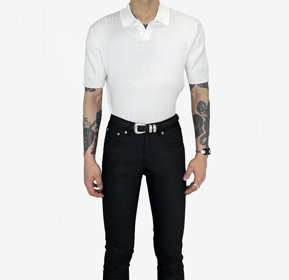 Fitted Golgi open collar short sleeve white