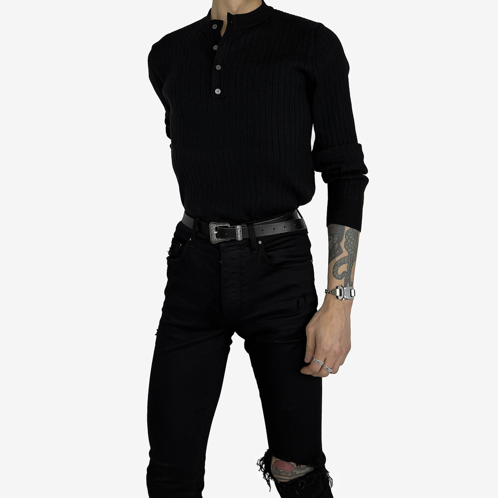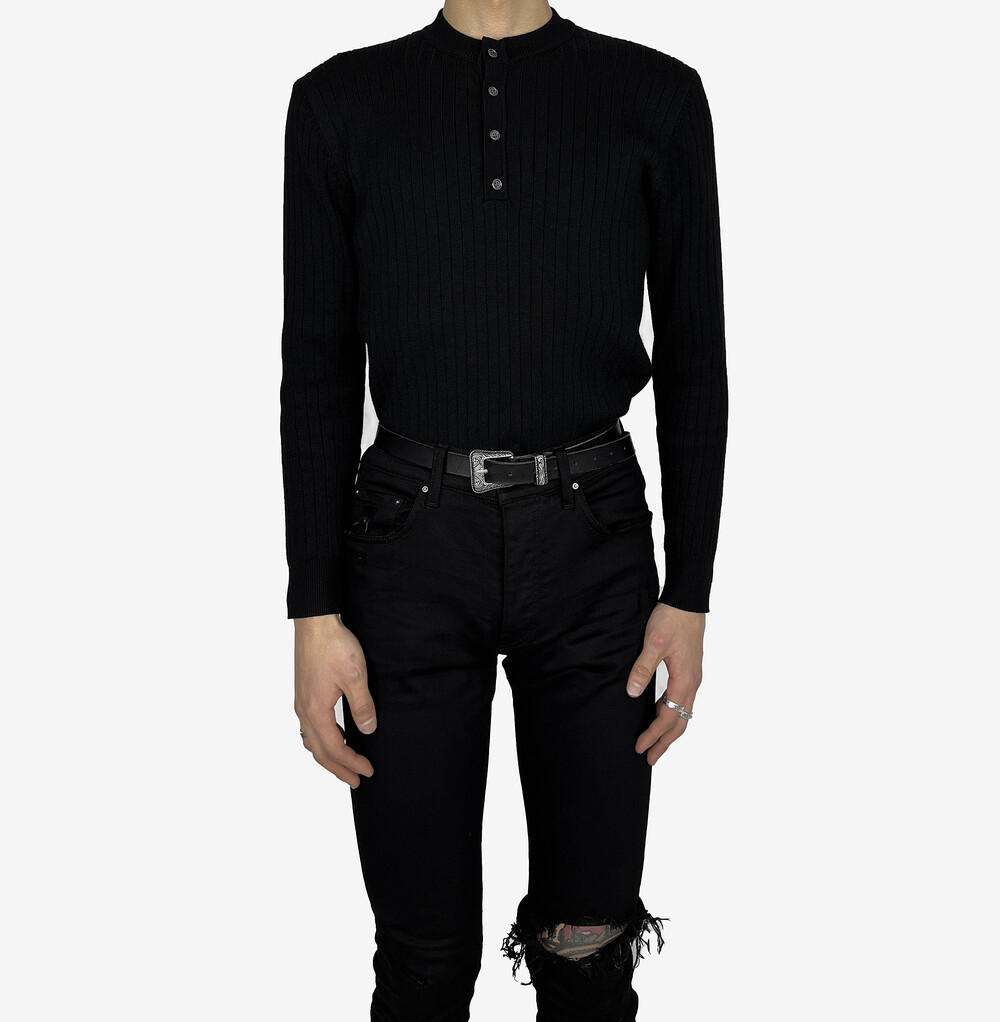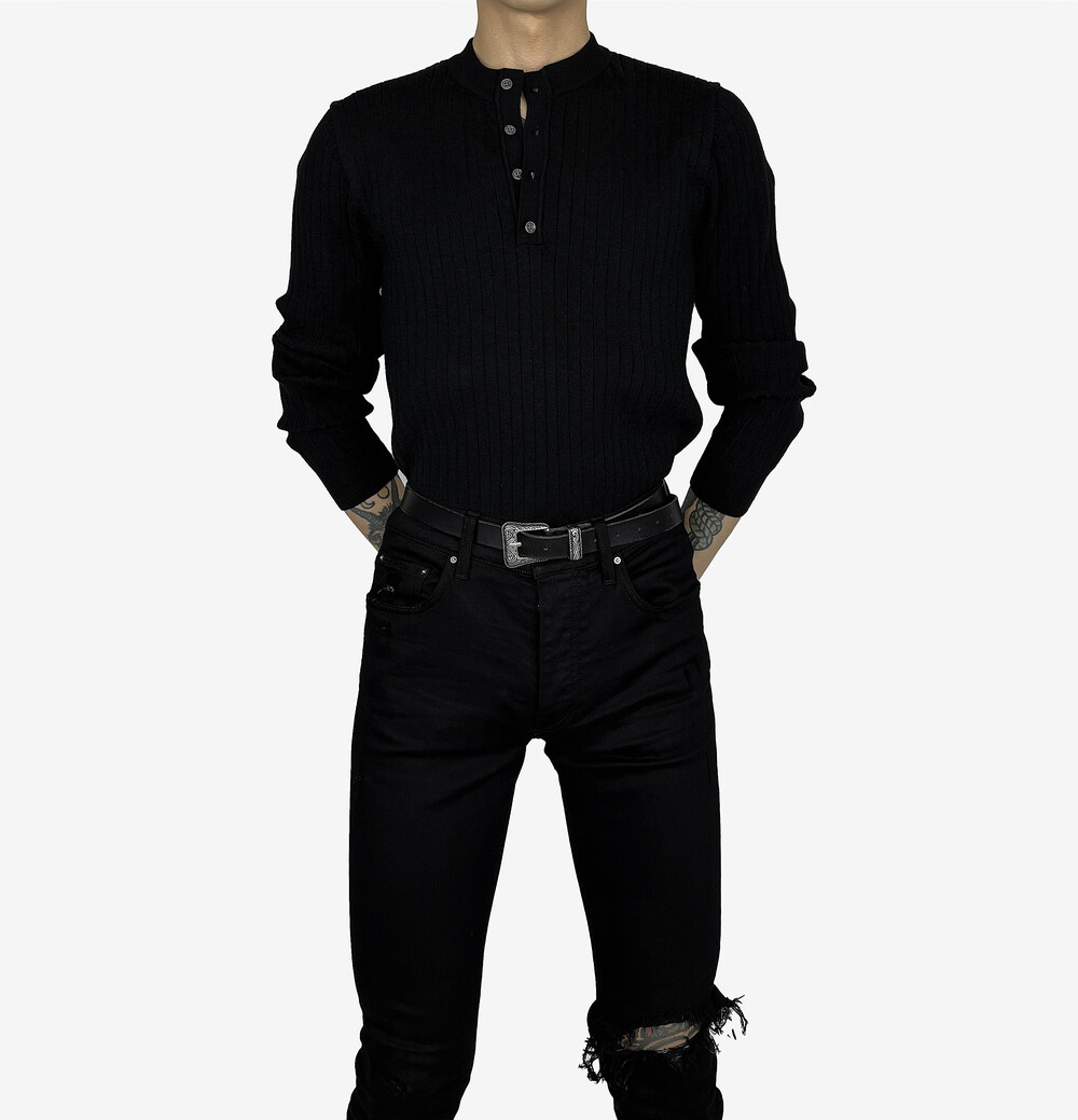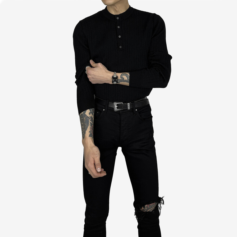 Fitted henry neck golgi knit black