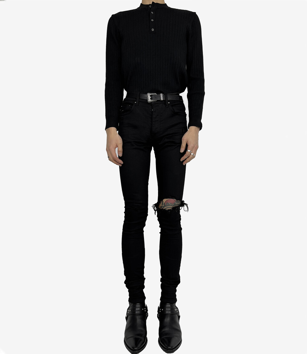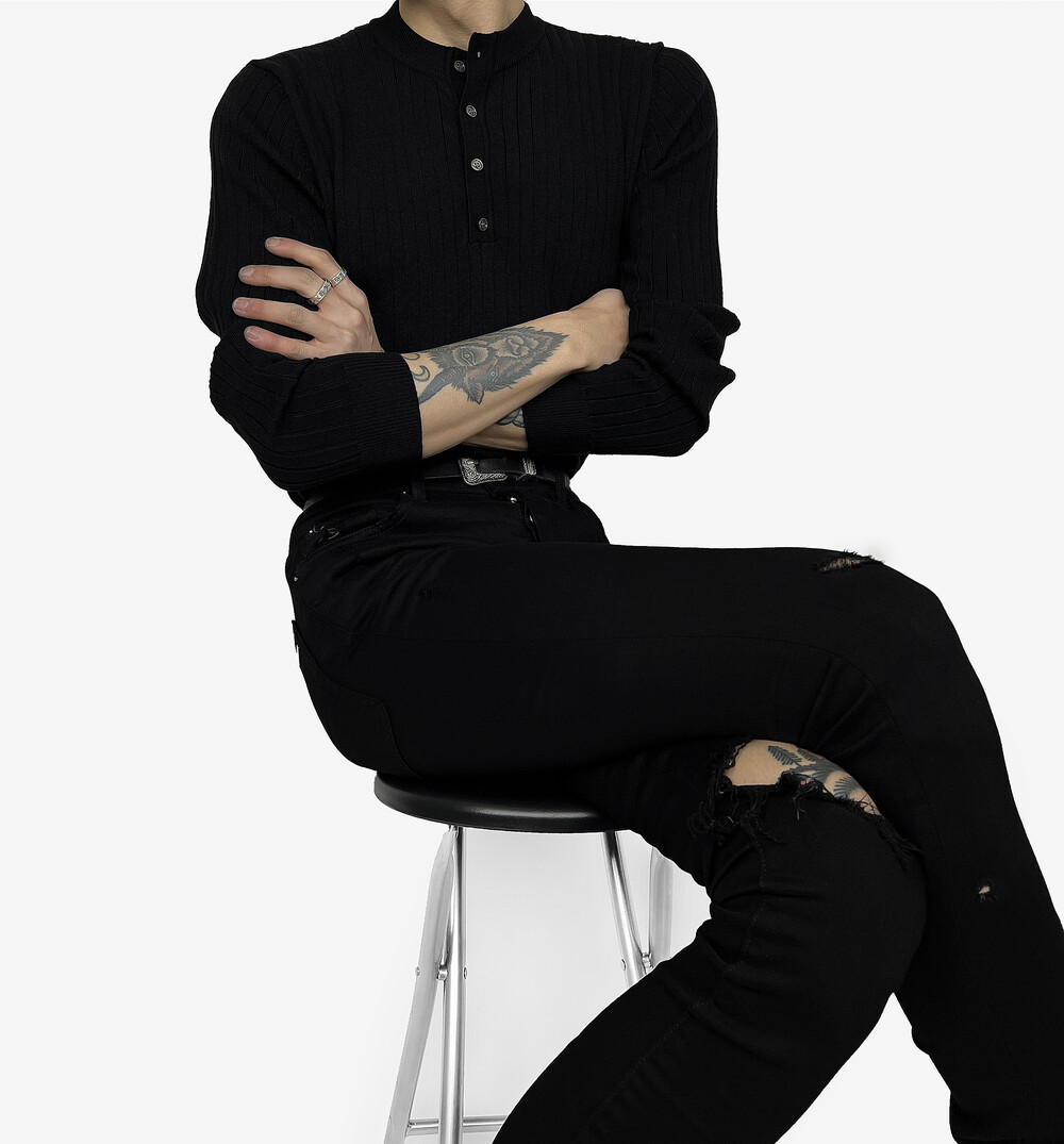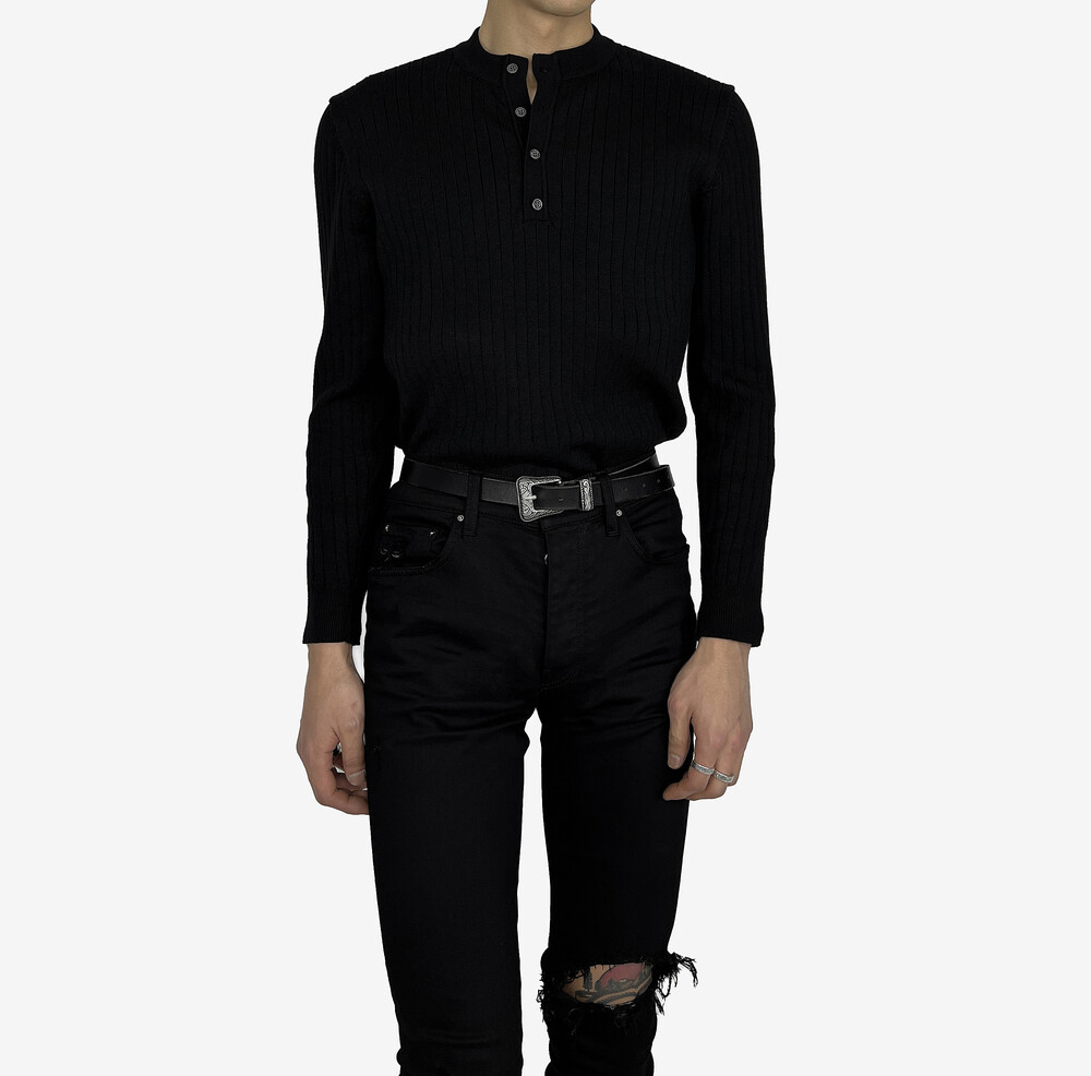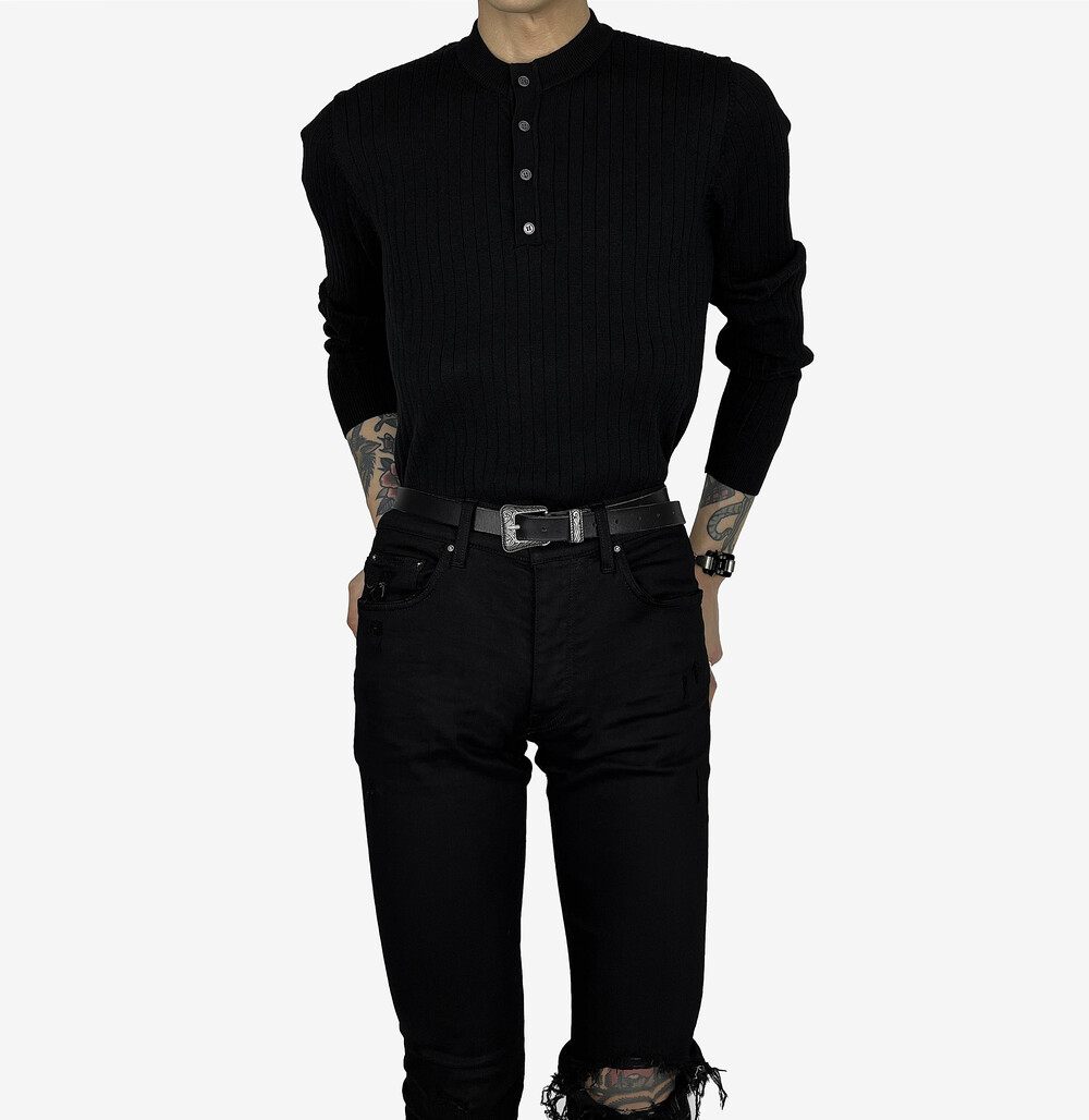 Fitted henry neck golgi knit black