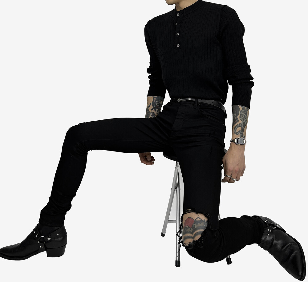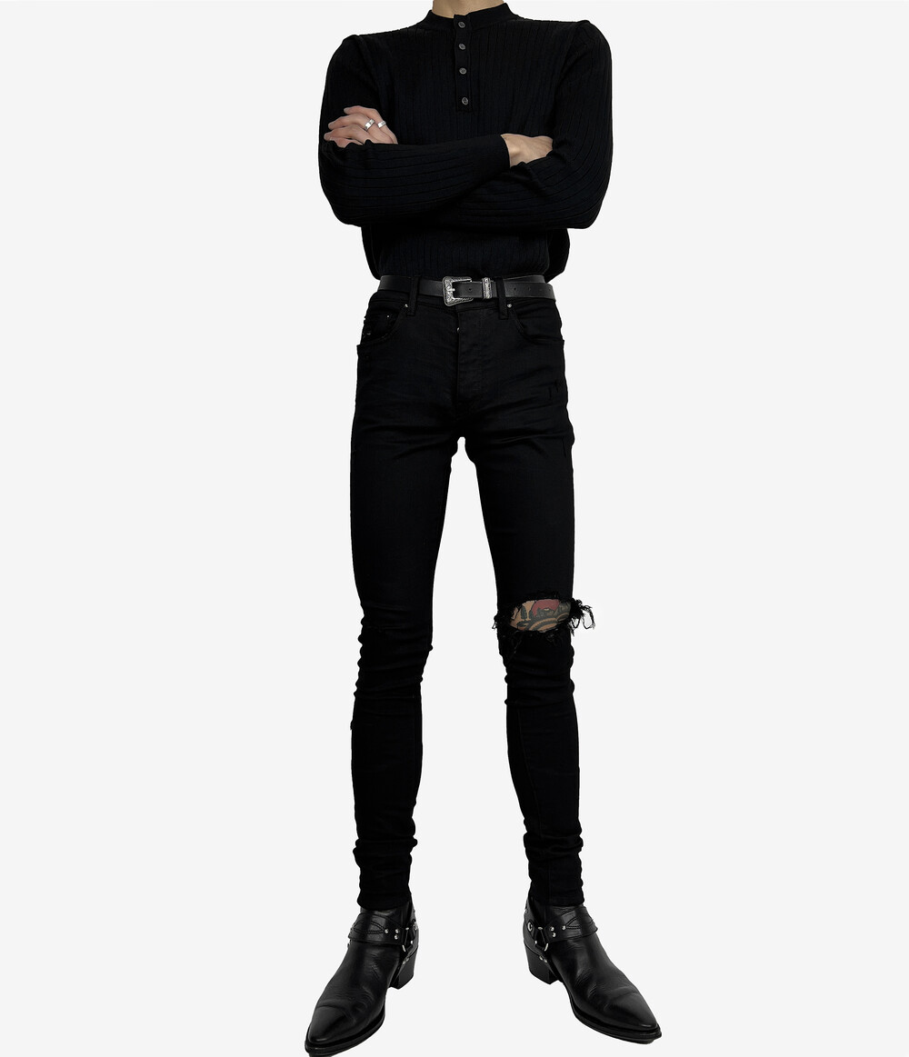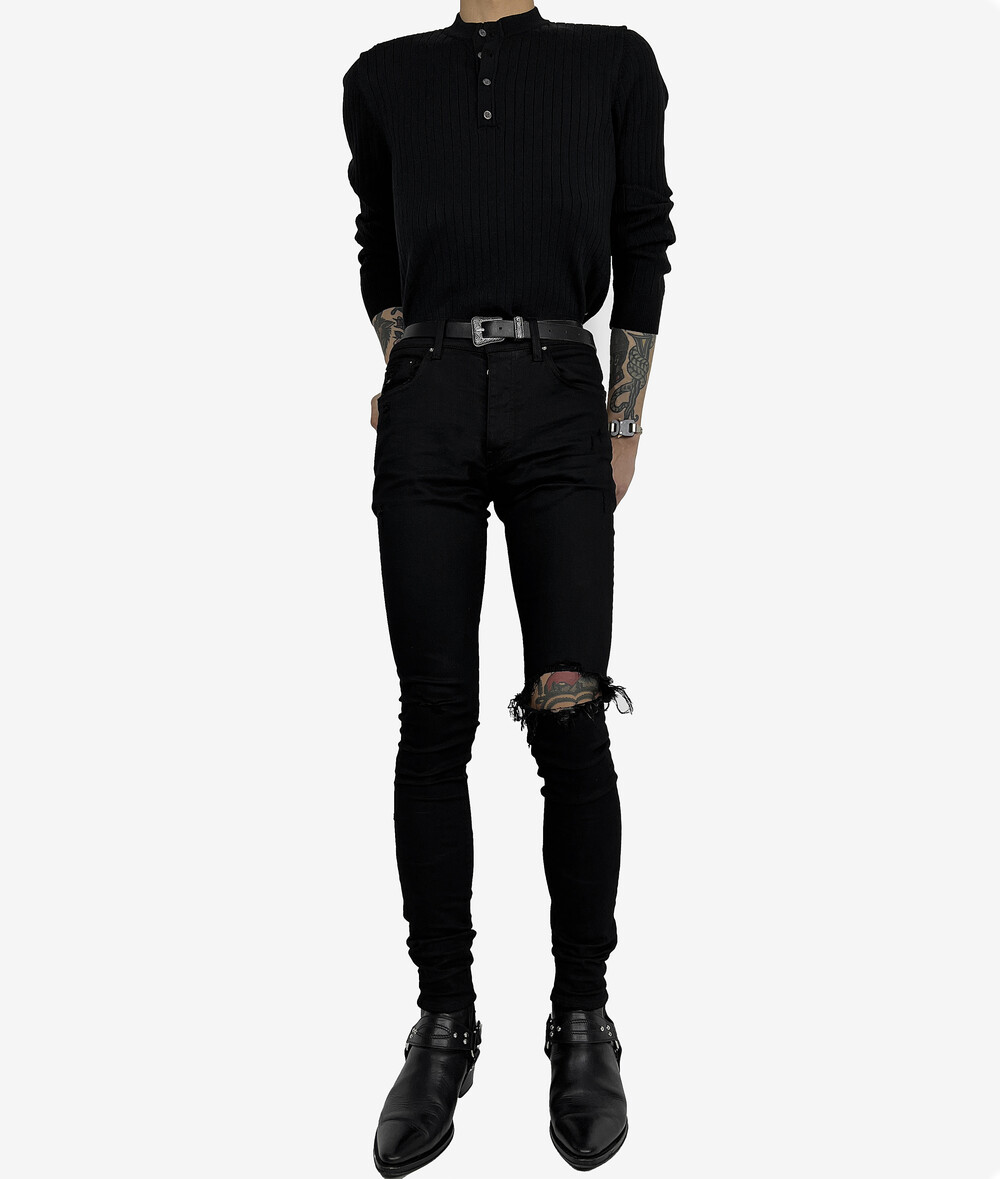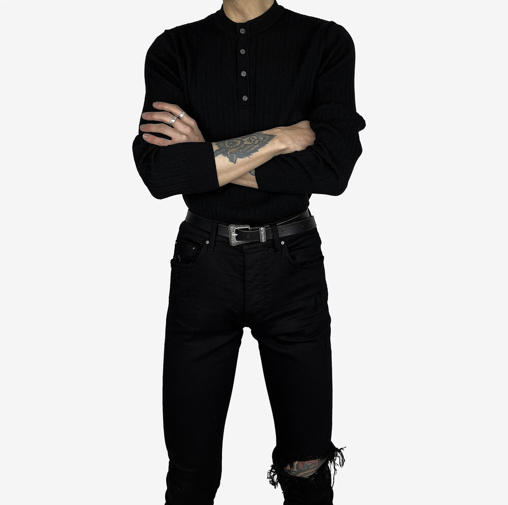 Fitted henry neck golgi knit black