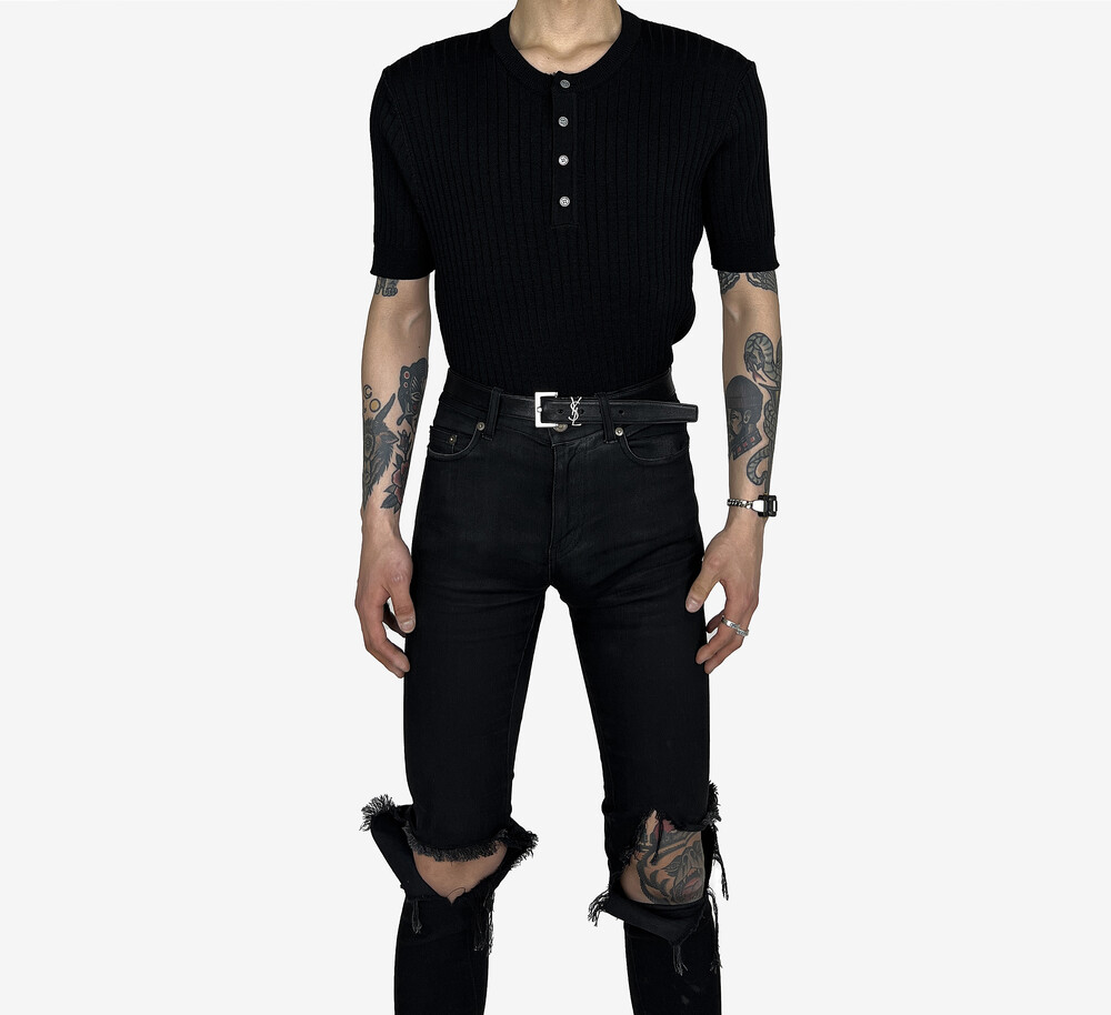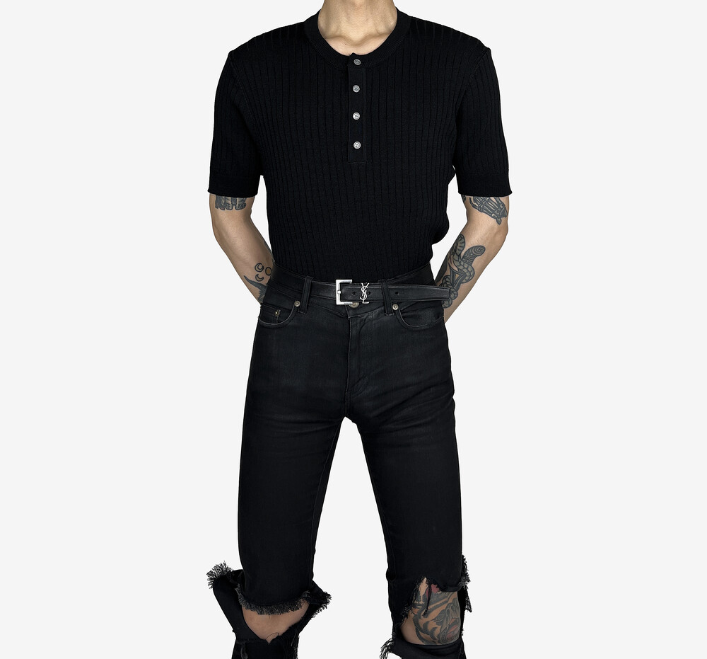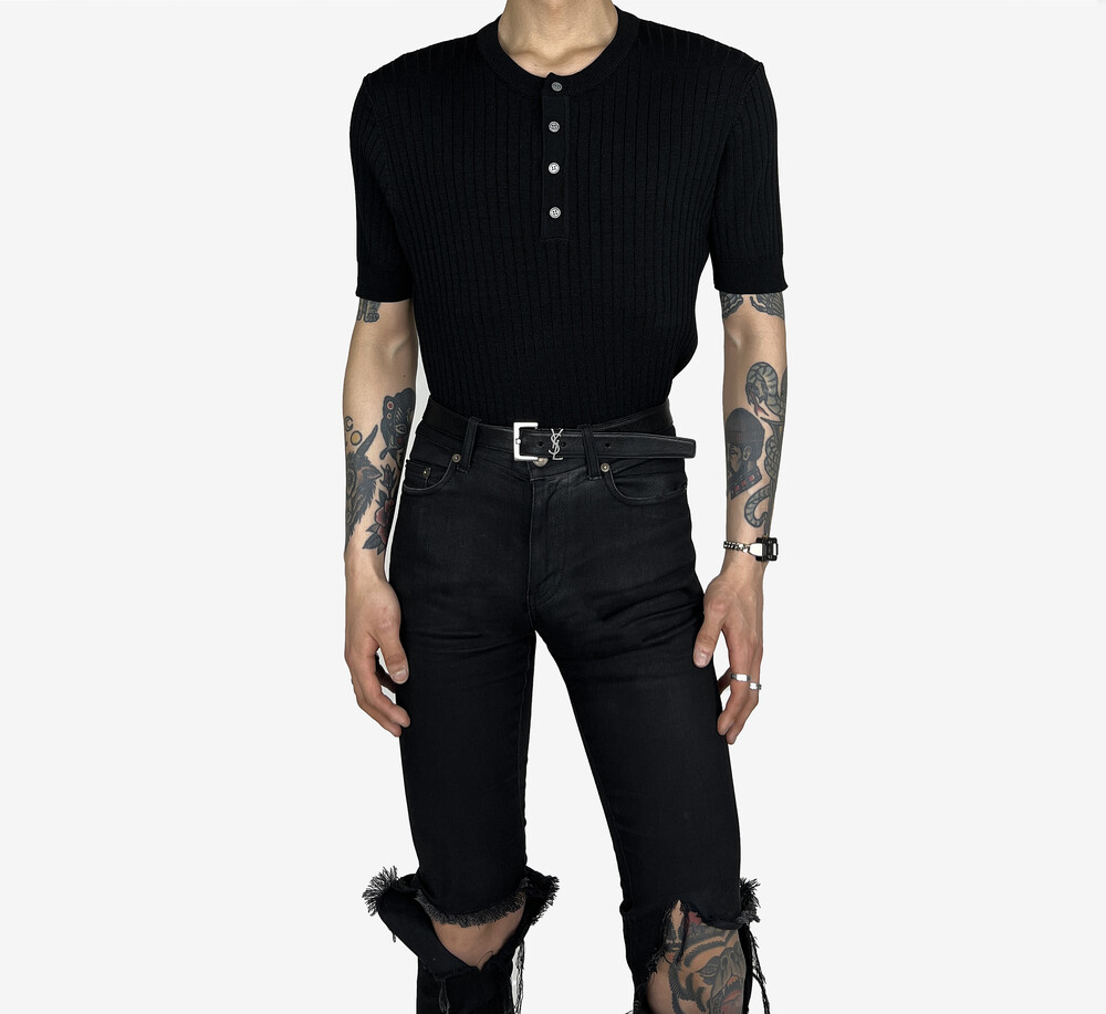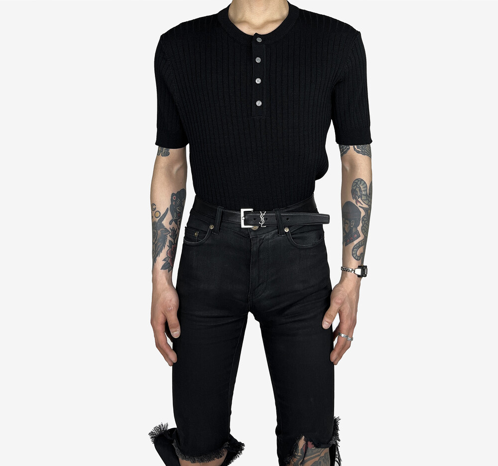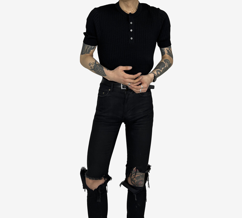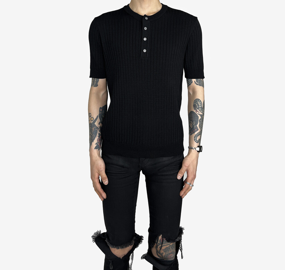 Fitted henry neck golgi knit short sleeve black