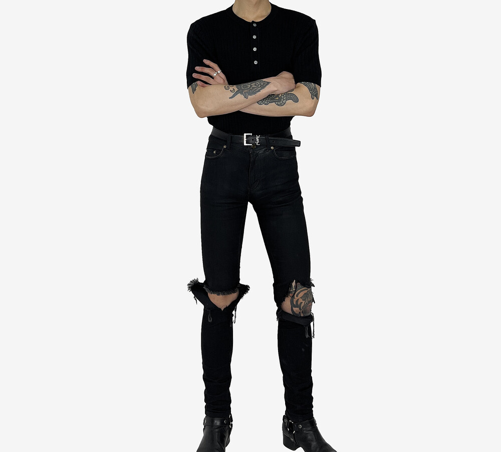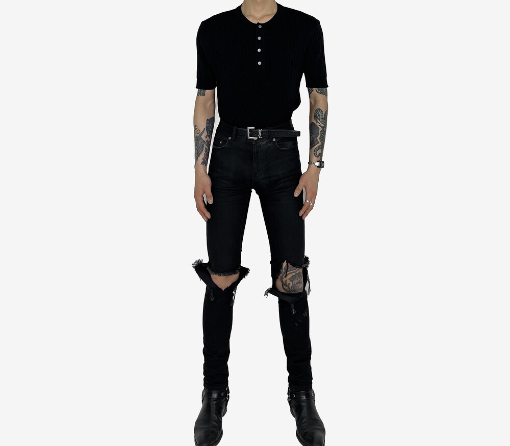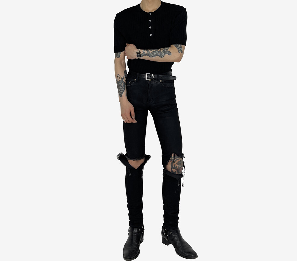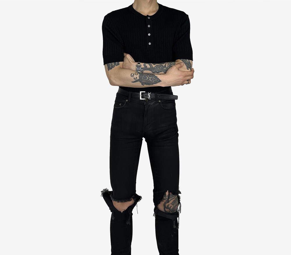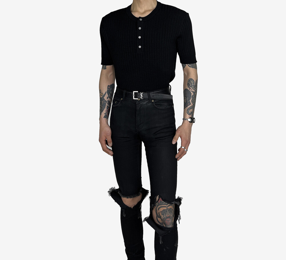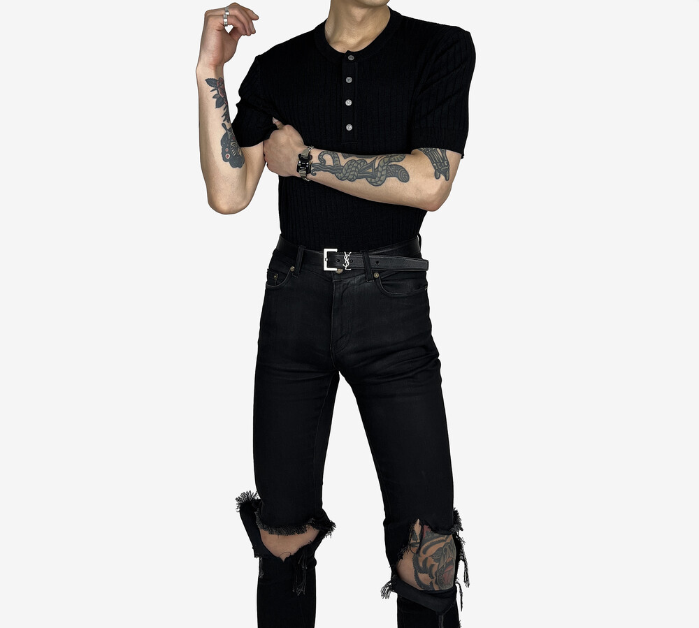 Fitted henry neck golgi knit short sleeve black