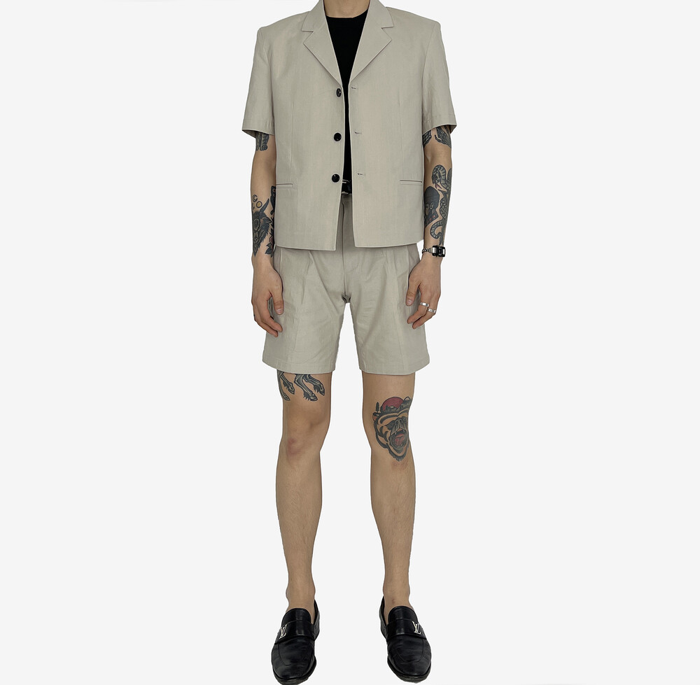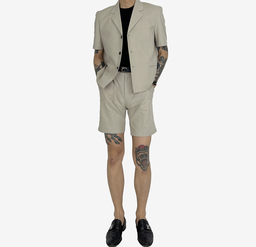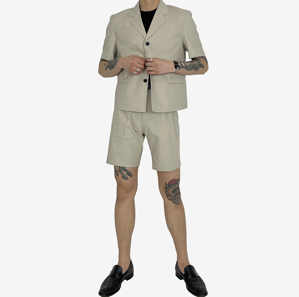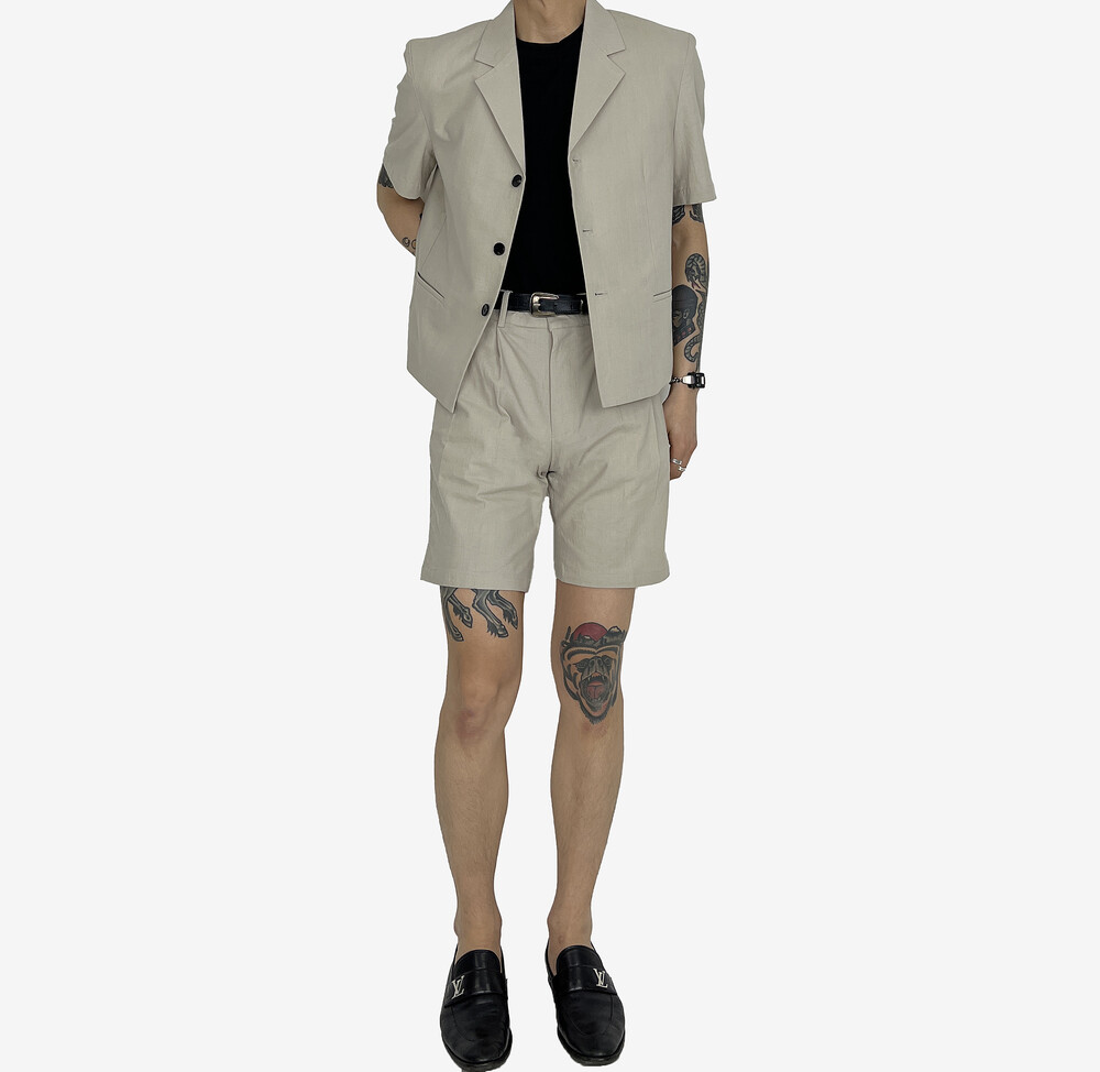 Linen shorts setup beige
