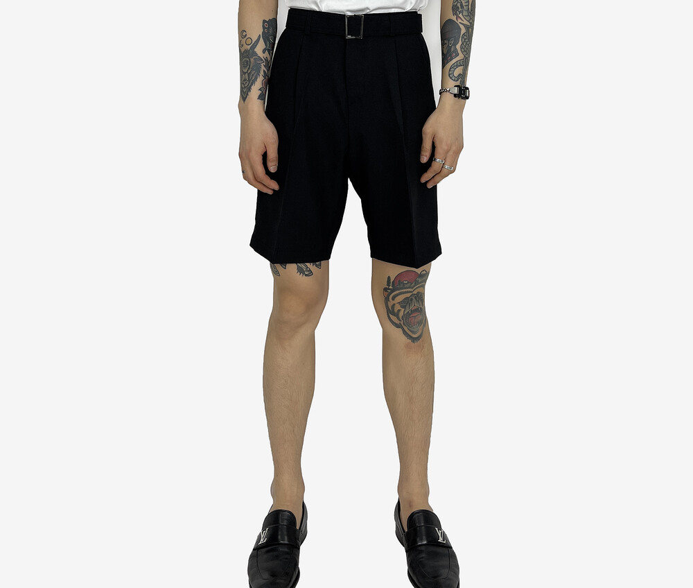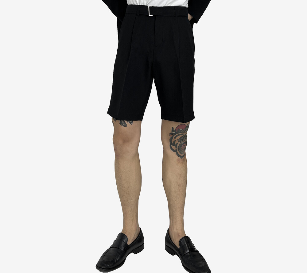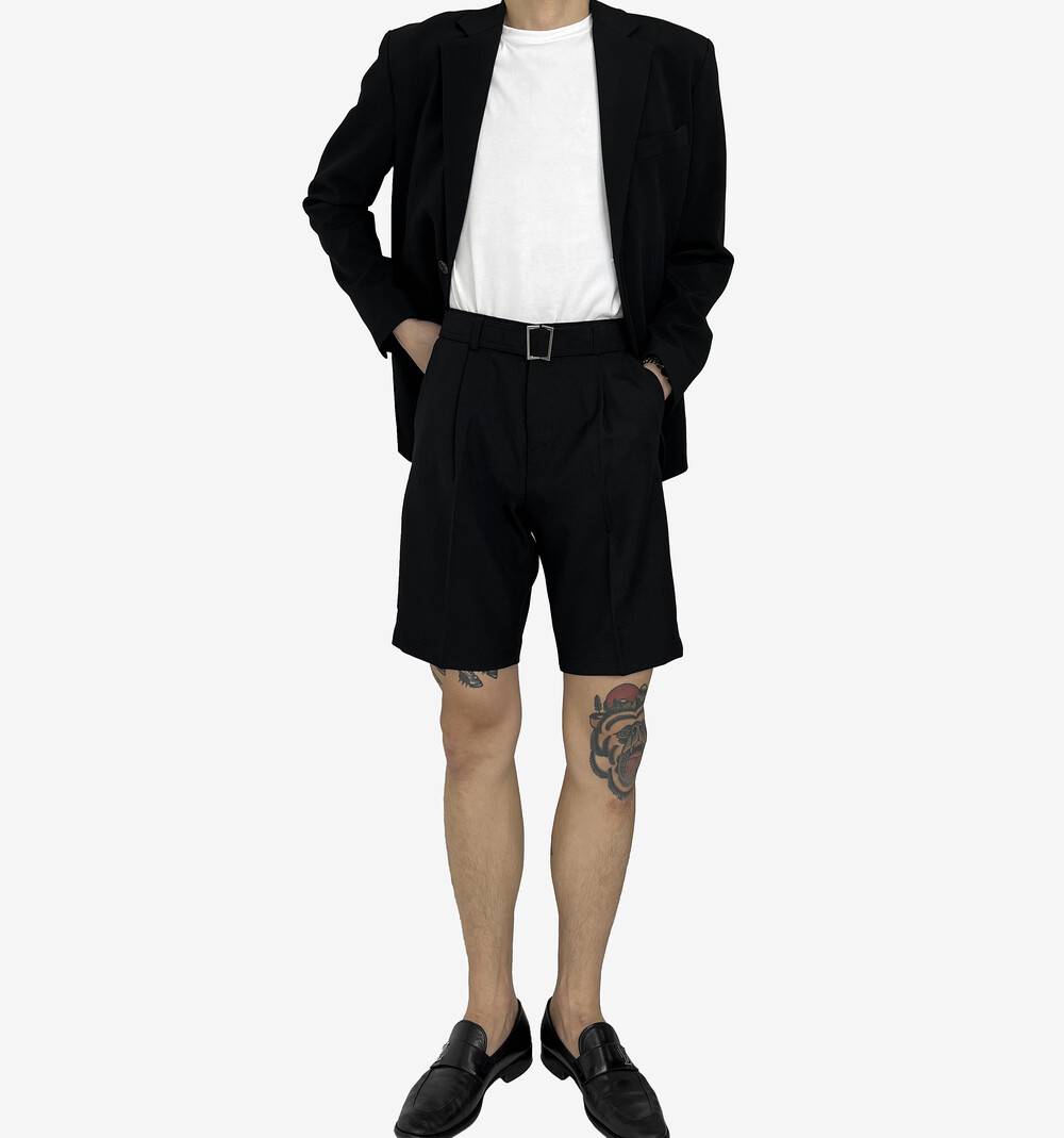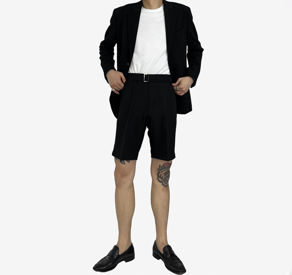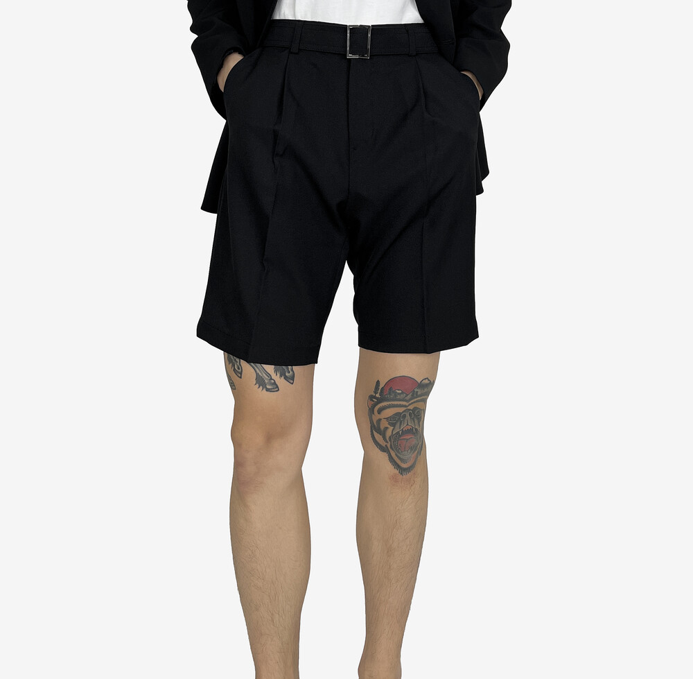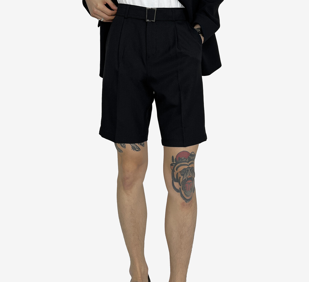 - 탄탄한 원단의 벨트 반바지 슬랙스.