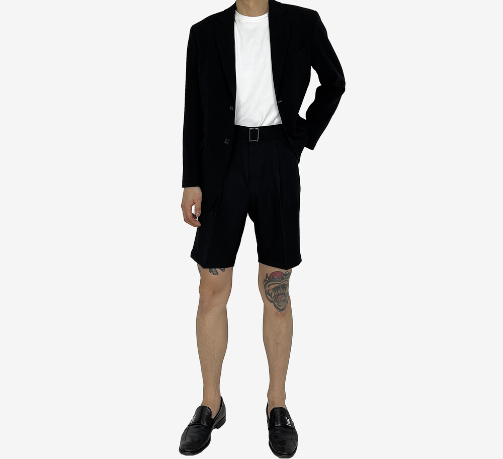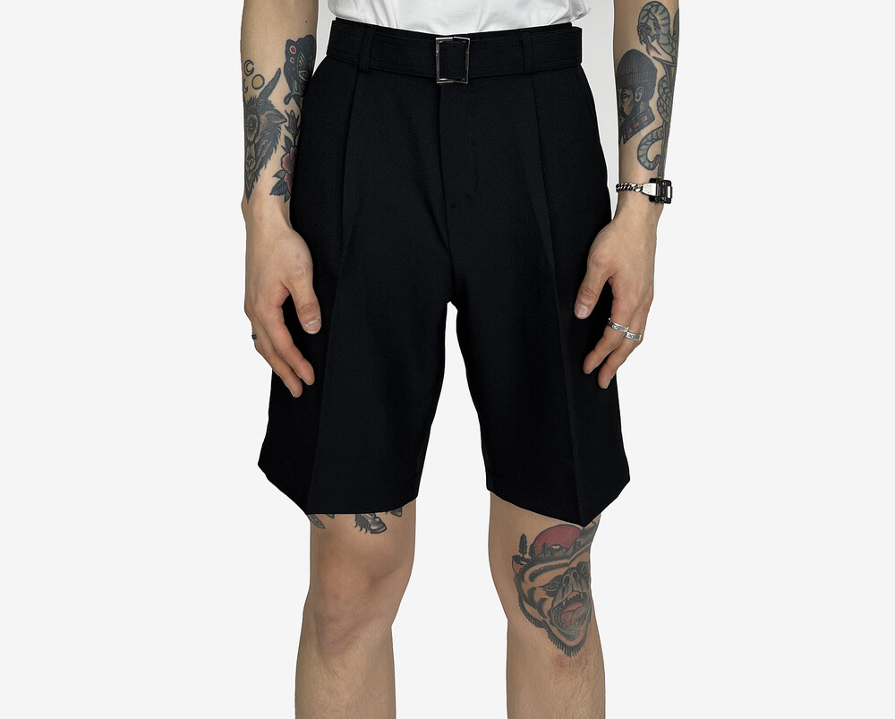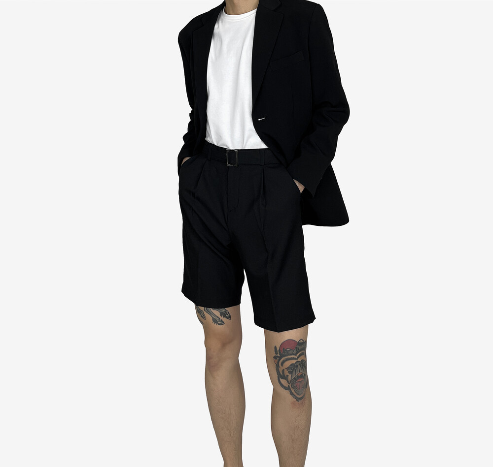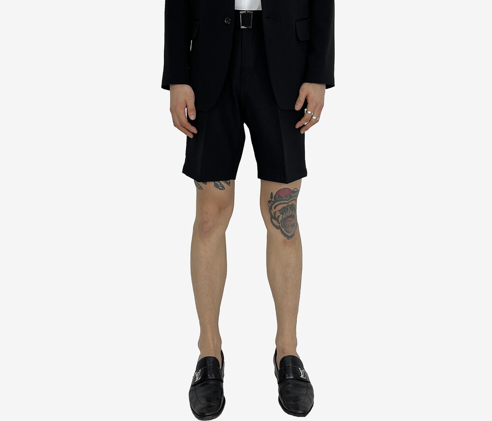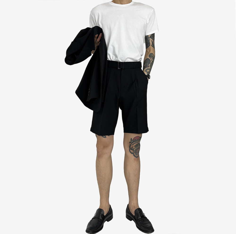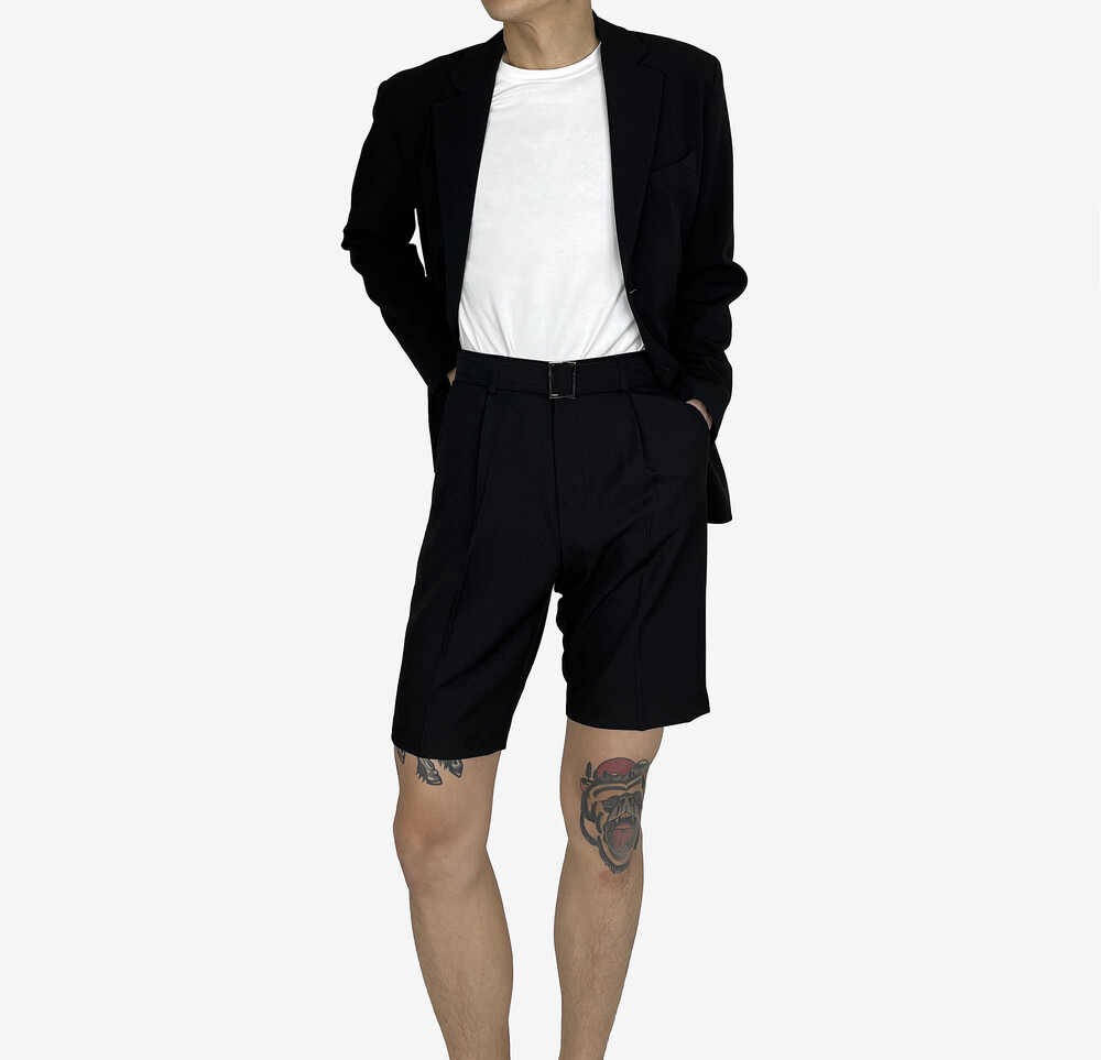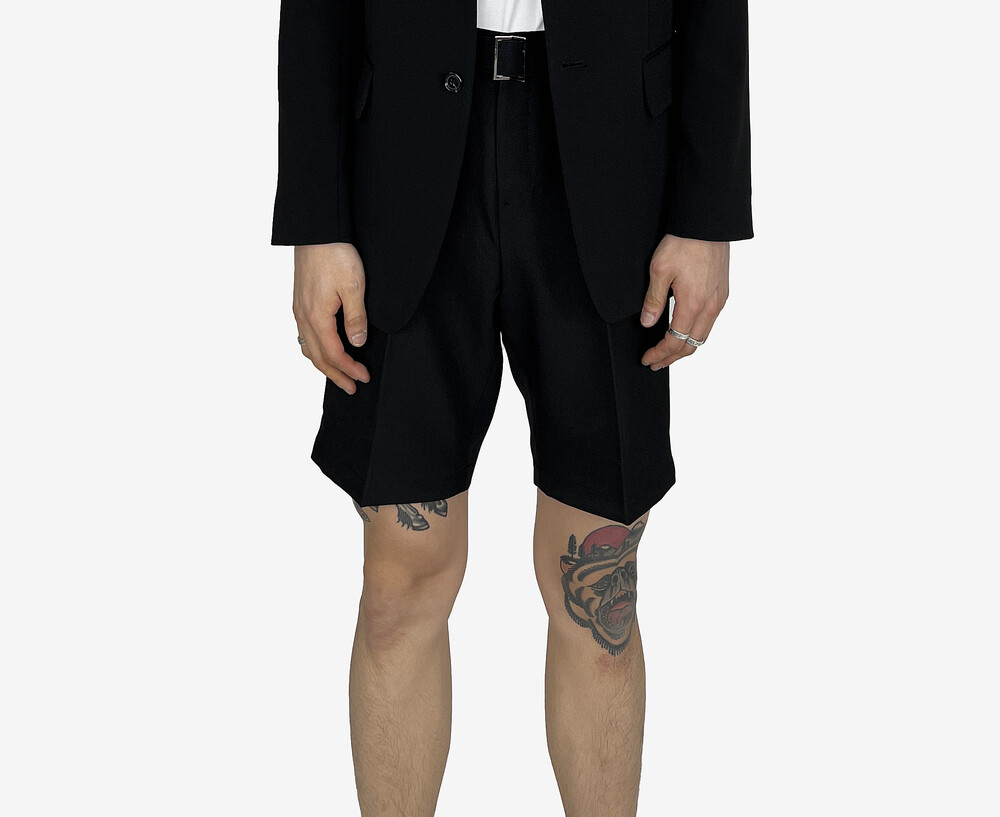 - 탄탄한 원단의 벨트 반바지 슬랙스.