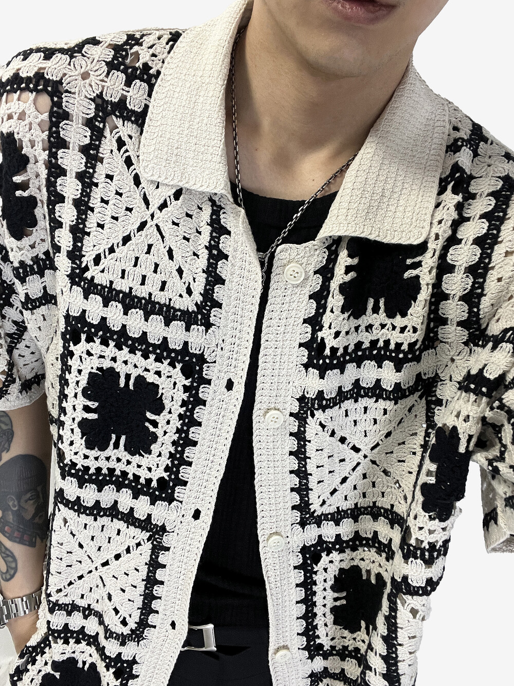 black Crochet clover cardigan