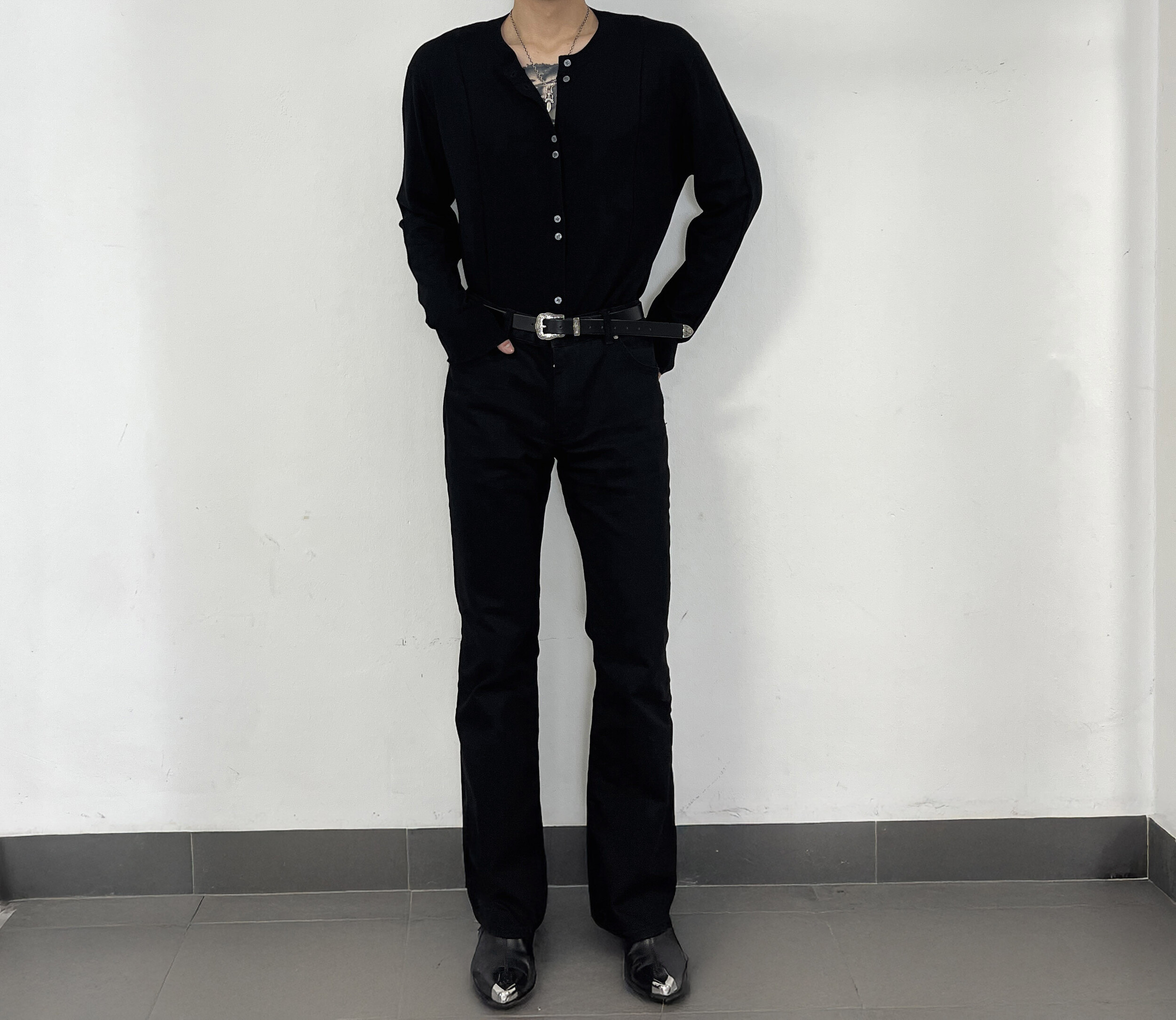 넨 블랙 실크 가디건