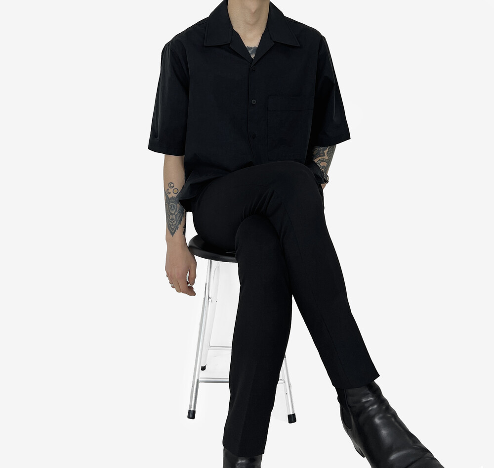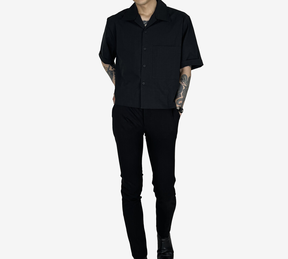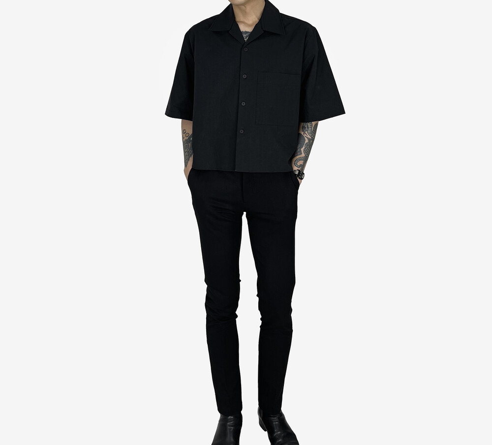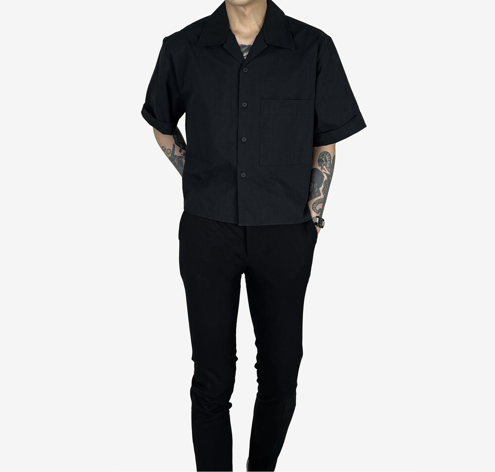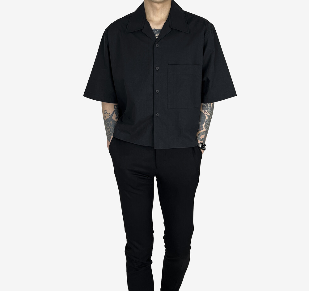 s/s Cotton Crop Shirts black