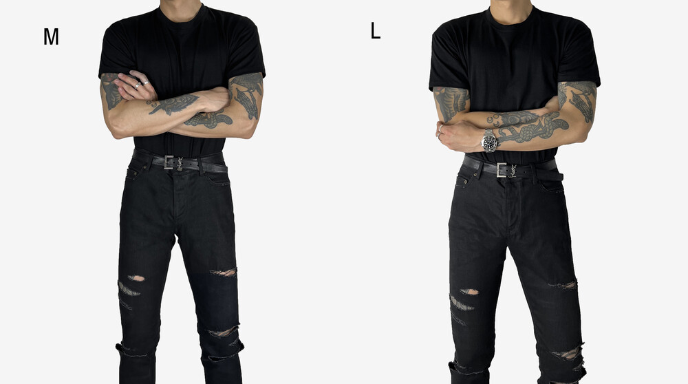 M Size는 암홀과 가슴쪽이 좀더 타이트해, 머슬핏 느낌이 더 드는 느낌입니다.